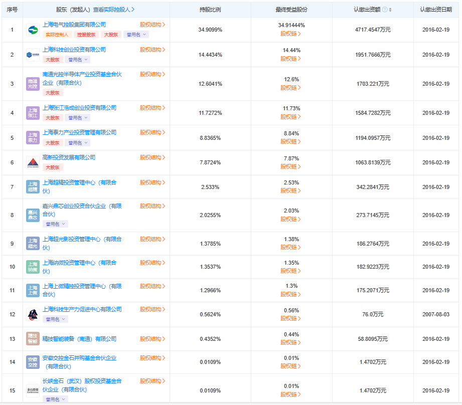 股权结构方面,据天眼查资料显示,上海微电子第一大股东为上海电气控股集团有限公司,持股34.9099%;第二大股东为上海科技创业投资有限公司,持股14.4434%。