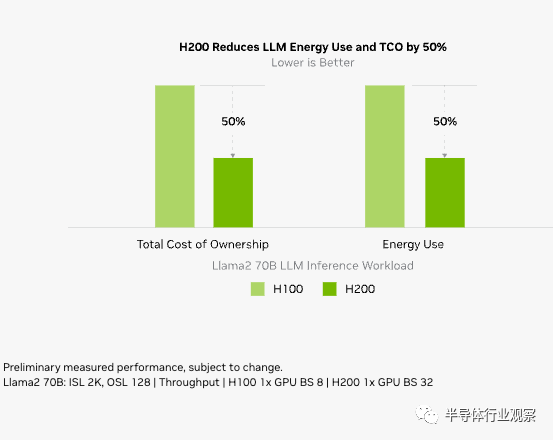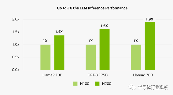 在处理 Llama2 (一个 700 亿参数的 LLM)等 LLM 时,H200 的推理速度比 H100 GPU 提高了 2 倍。