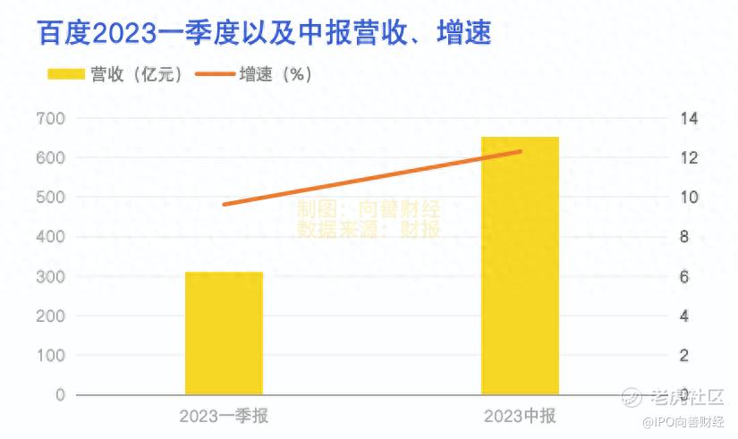 从股价曲线上来看,2023年的两个爬升节点,都是在一季报和半年报发布后,而一季报和半年报中,百度营收增长表现都还是不错的。