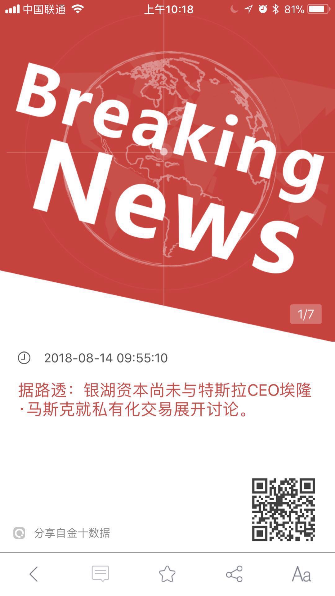$特斯拉(TSLA)$ 银湖说他们未和特斯拉商谈私有化事情