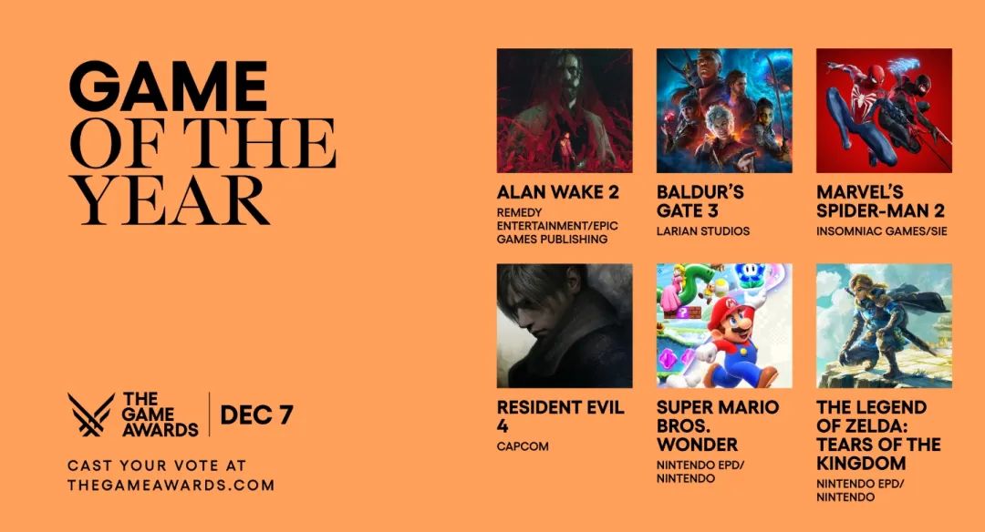 最受关注的奖项必然是年度游戏大奖。今年至今的最大黑马《博德之门3》堪称励志,不仅以2A的工作室规格从一众3A大作的围追堵截中杀出重围,更被看作是年度游戏的最可能获奖人选。另外,任天堂的《塞尔达传说:王国之泪》与《超级马力欧惊奇》更是双双入选年度游戏,继2017年后再度上演红绿帽“双黄蛋”的戏码。