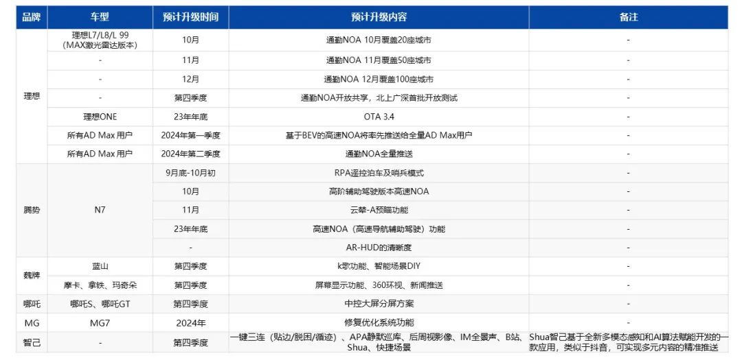 新势力共计更新120项内容,相较上月明显减少。上月释放了较多升级内容,预计年底会对相关内容进行优化。