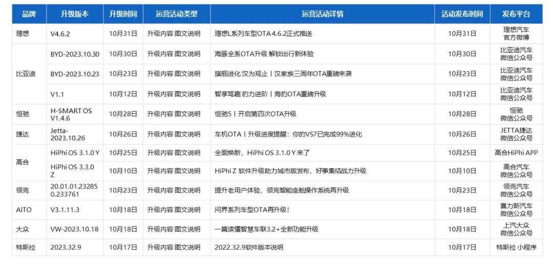 2023年10月,行业共计更新237项功能,升级规模恢复到节前水平。由于临近年底,预计未来2个月不会有太多的升级推送,直到明年春节前的一月份,才会出现密集的升级。
