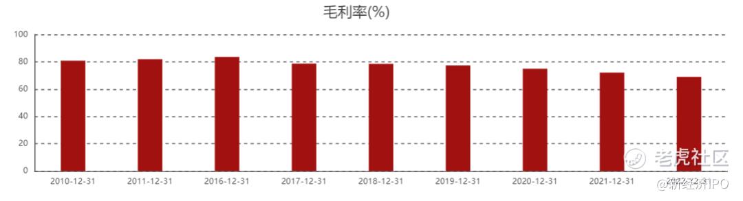 拉长时间轴可以发现,2022年是昊海生科自2016年以来归母净利润最低的一年。与此同时,昊海生科的整体毛利率亦持续走低,从2018年的约78%高水平下滑至2022年的70%以下。
