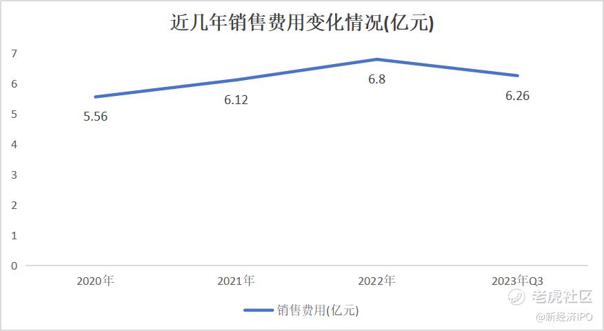 过去三年,昊海生科营收在一路攀升的同时,其费用也正持续提升。2020年-2022年,公司销售费用分别为5.56亿元、6.12亿元、6.8亿元。今年前三季度,昊海生科的销售费用高达6.26亿元,同比增加25.71%。