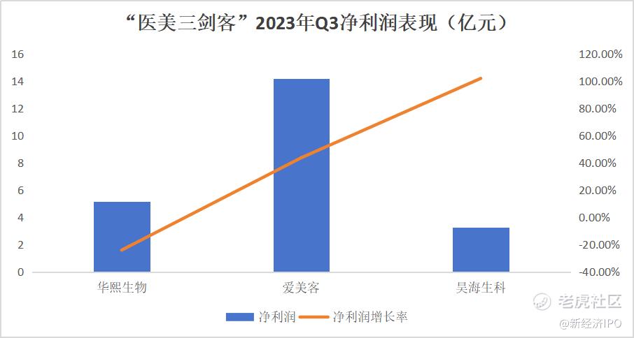 同期,华熙生物、爱美客、昊海生科实现净利润分别为5.14亿元、14.18亿元、3.27亿元;净利润增长率分别为-24.07%、43.74%、102.04%。