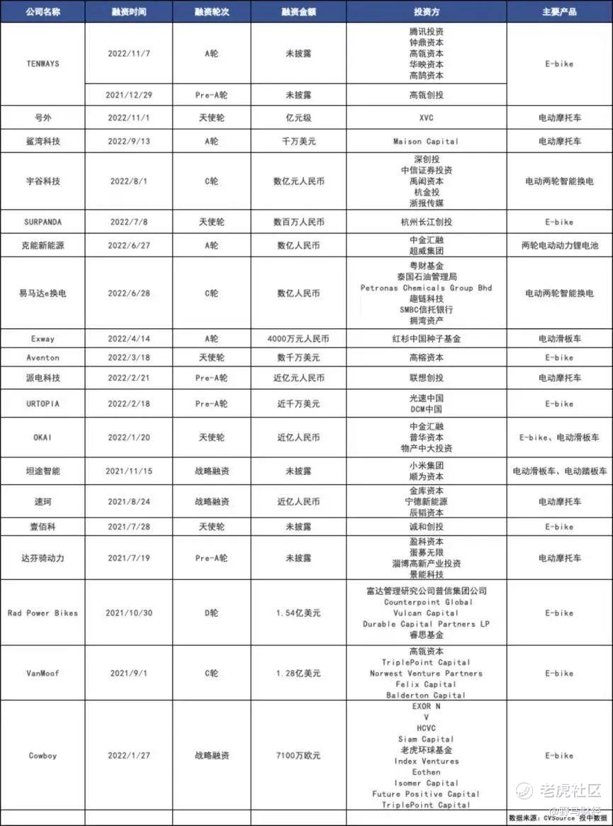 据CVSource数据显示,2021年7月-2022年11月的一年半时间中,超20家两轮电动车企业获得融资。其中,一家叫做TENWAYS公司,获得了阿里巴巴、腾讯、高瓴资本的融资,最新一轮融资已高达3亿。