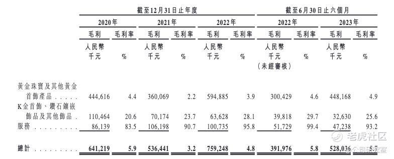 2020年至2023年上半年,梦金园毛利率分别为5.9%、3.2%、4.8%、5.7%。导致梦金园毛利率长期偏低的原因主要在于产品结构。