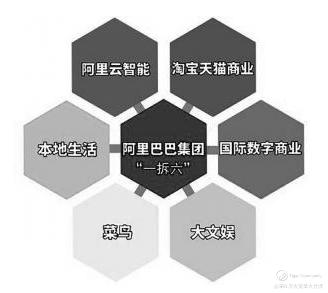 今天阿里巴巴集团分为1+6+N的事业部,即云智能集团、淘天集团、本地生活集团、菜鸟集团、国际数字商业集团、大文娱集团等六大业务集团和多家(N)业务公司。