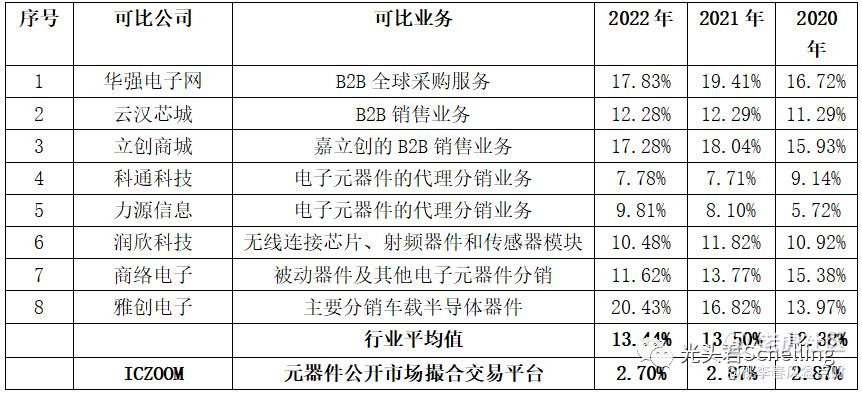 我整理了近10家元器件流通领域头部公司的财务数据,从近3年的毛利率对比可以看出,ICZOOM与同业公司存在较大差异,其核心原因还是在商业模式上。