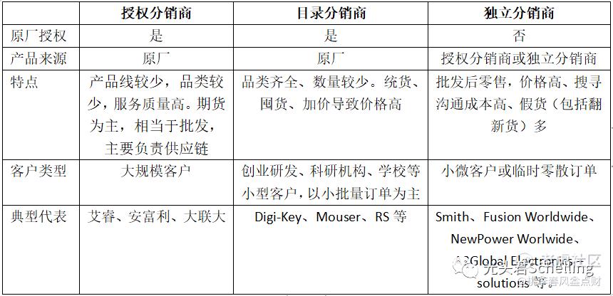 在传统的贸易流通体系中,包括原厂直销与贸易商分销两种模式。按照是否拥有原厂授权,贸易商模式主要分为授权分销商、目录分销商和独立分销商3种类型,作为授权分销商的补充,目录分销商和独立分销商对供应链起到润滑剂的作用。随着元器件贸易行业的快速发展,各种模式交叉并行,独立分销商逐渐向混合型分销转型,经营越来越多的授权品牌。