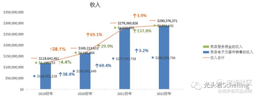 2019-2022财年,公司服务佣金收入分别为119万美元、121万美元、161万美元和384万美元,近3年同比增长了4.40%、29.90%和137.80%,订单执行服务佣金收入呈加速增长态势。