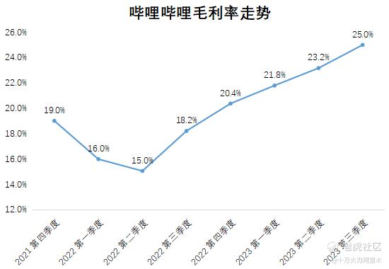 哔哩哔哩高毛利率的广告业务持续保持高速增长,同比增长21%,推动毛利率已经连续多个季度高速增长,本季度毛利率达到25%,去年同期为18.2%,经营业绩持续向好。