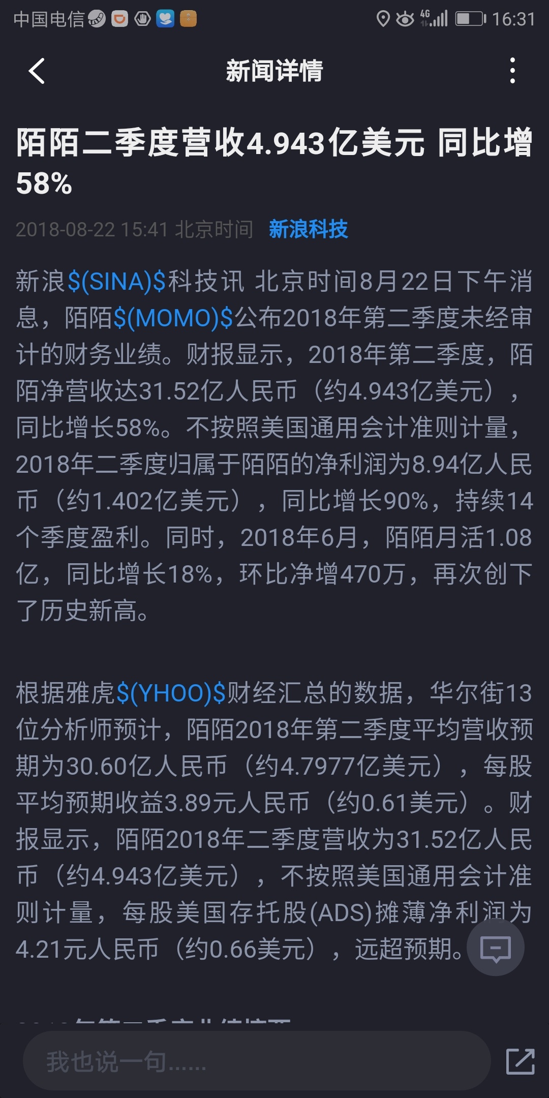 $陌陌(MOMO)$未经审计就发出消息,存在恶意炒作。。