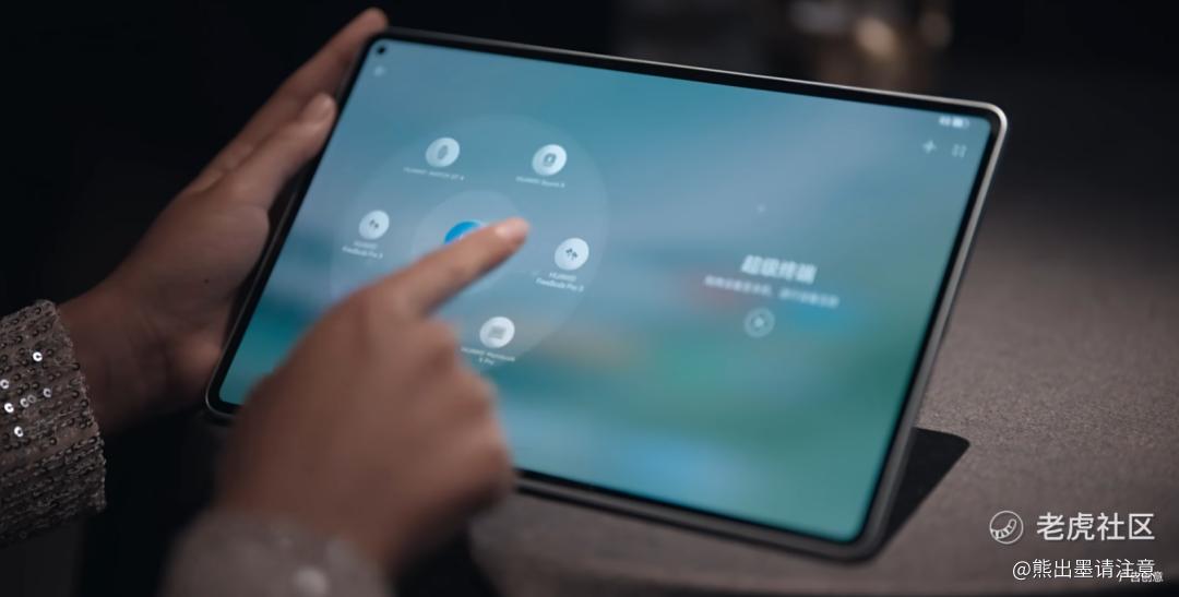 另外,短片中还对HarmonyOS的智慧交互作了展现。女主通过超级终端页面拖动图标,轻松将华为平板与周边智能设备联动,实现硬件能力共享、文件图片跨端高速传输等,丝滑的互联体验就像视频文案里提到的,“不曾相遇的彼此,也可以熟悉的不分彼此”。