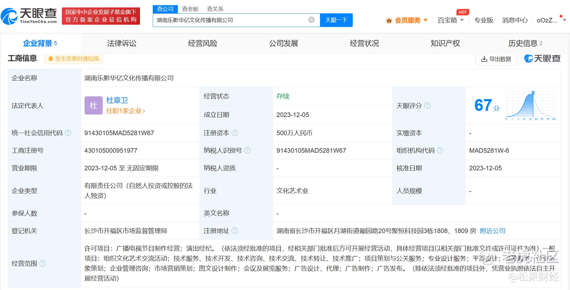 松果财经讯,天眼查App显示,近日,湖南乐影华亿文化传播有限公司成立,法定代表人为杜章卫,注册资本500万人民币,经营范围含广播电视节目制作经营、演出经纪、组织文化艺术交流活动、市场营销策划等。