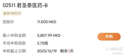 公司12月14日开始招股,招股价是11.5港元,每手股数500股,最低申购金额5807.99港元,市值59.2亿港元,发行数量2419.4万股,属于药品行业,无绿鞋。