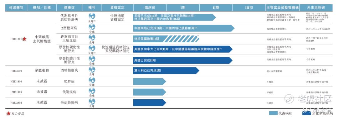 公司于2011年成功,是一家生物制药公司,专注于就代谢及消化系统疾病的治疗发现、开发及商业化多功能及多靶点疗法。公司已自主开发包含1款核心产品及4款其他候选产品的产品管线。核心产品HTD1801(小檗硷熊去氧胆酸盐)是一种新分子实体,作为肠肝抗炎及代谢调节剂,靶向调节对人体代谢过程中至关重要的多个通路,包括与代谢及消化系统疾病相关的通路。