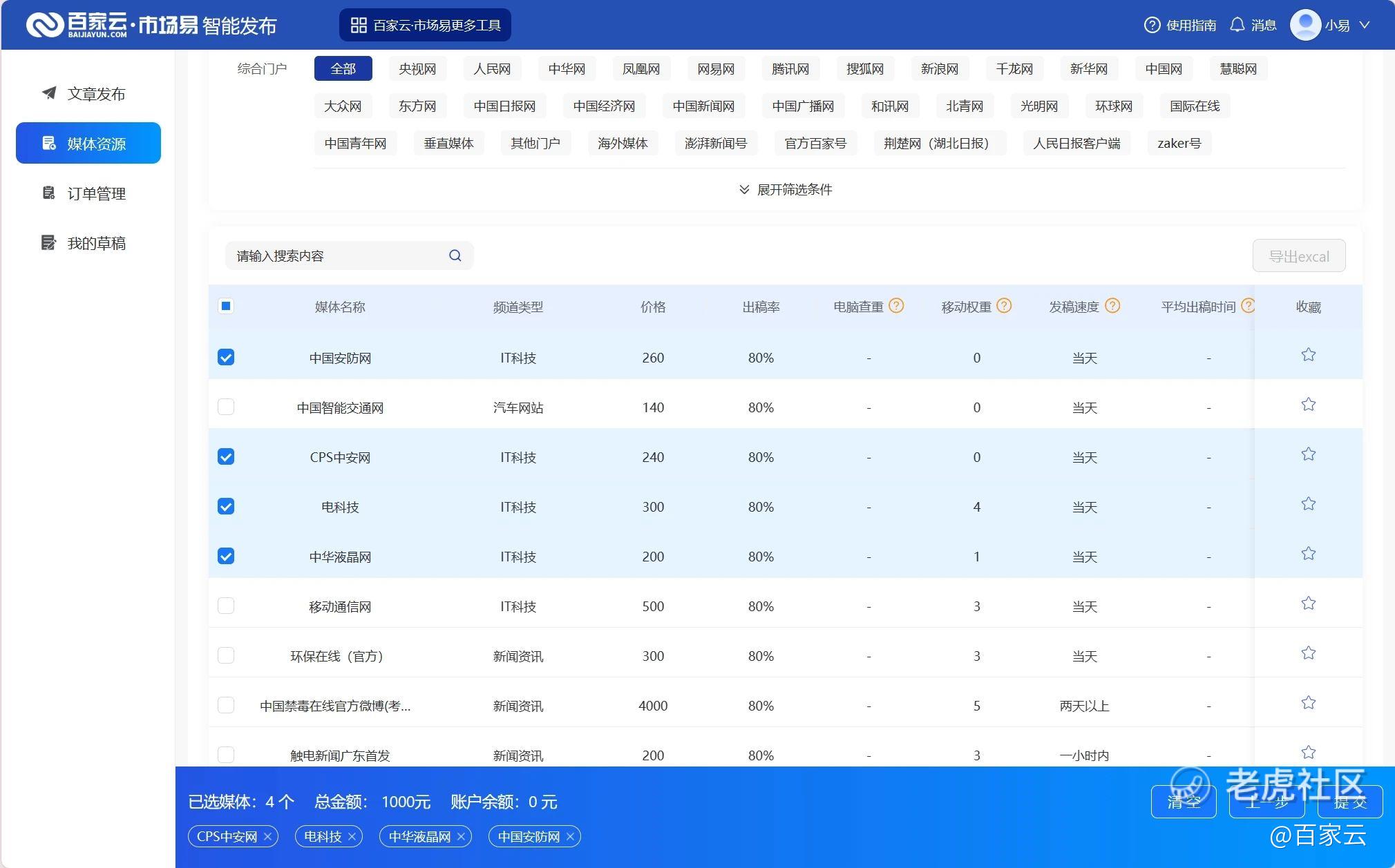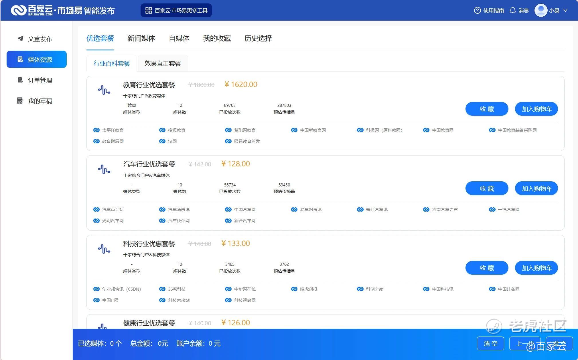 百家云市场易所打造的的智能发布平台,基于人工智能、大数据等技术所打造的新一代自助发稿平台,平台上媒体资源一目了然,发稿更快更方便!
