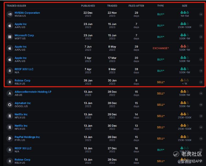 尤其今年6月15日,她以80美元的执行价在苹果行使了50份看涨期权,从而买入了这家科技巨头5000股股票,价值在25万美元至50万美元之间(下图中第二行)。同时,以180美元的执行价行使了微软的50份看涨期权,从而买入了这家科技巨头5000股股票,价值在50万美元至100万美元之间(下图中第三行)。