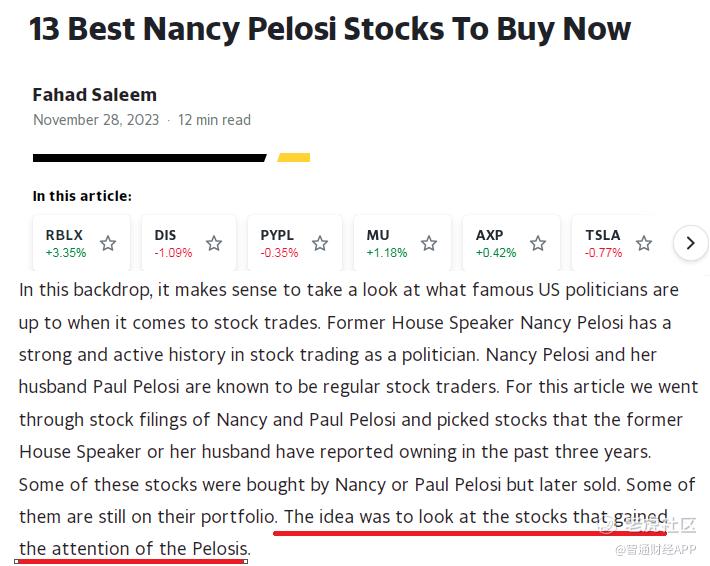 既然股民们无法有效监督公权,有些股民索性就向其投降,甚至把国会山投资视作“风向标”,跟在后面捡肉骨头吃,甚至还有鼓吹买入“佩洛西概念股”的专门分析文章: