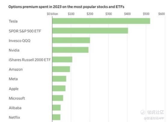 抛开政策变动因素不谈,单看2023期权交易额排行,就能发现,个股期权特斯拉第一,英伟达第二,亚马逊第三。