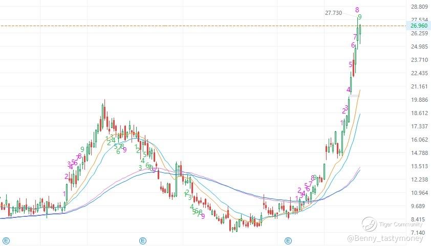 由于比特币大升,其后挖矿股跟着炒作。美股中Marathon Digital(MARA)升幅惊人,由7元左右,短短的2个月爆升至26元之上。其他如HUT8,RIOT$Riot Blockchain, Inc.(RIOT)$ 也是倍升。交易平台$Coinbase Global, Inc.(COIN)$ Coinbase(Coin)由70元一口气升到170元之上了,离200元也不远了。