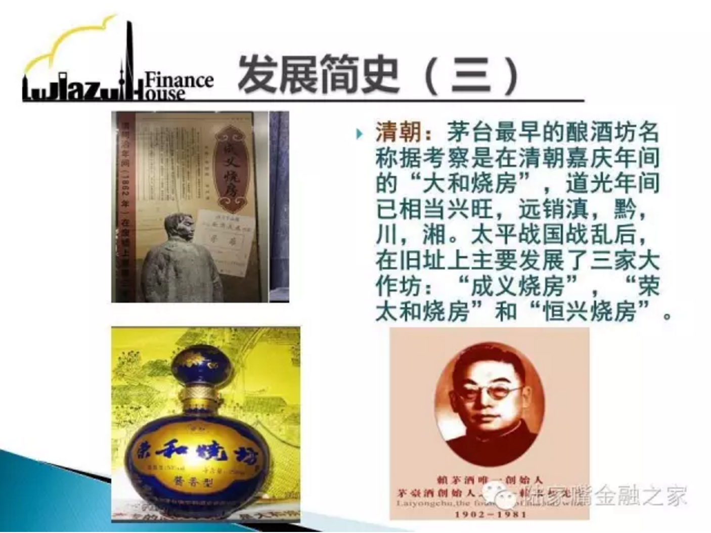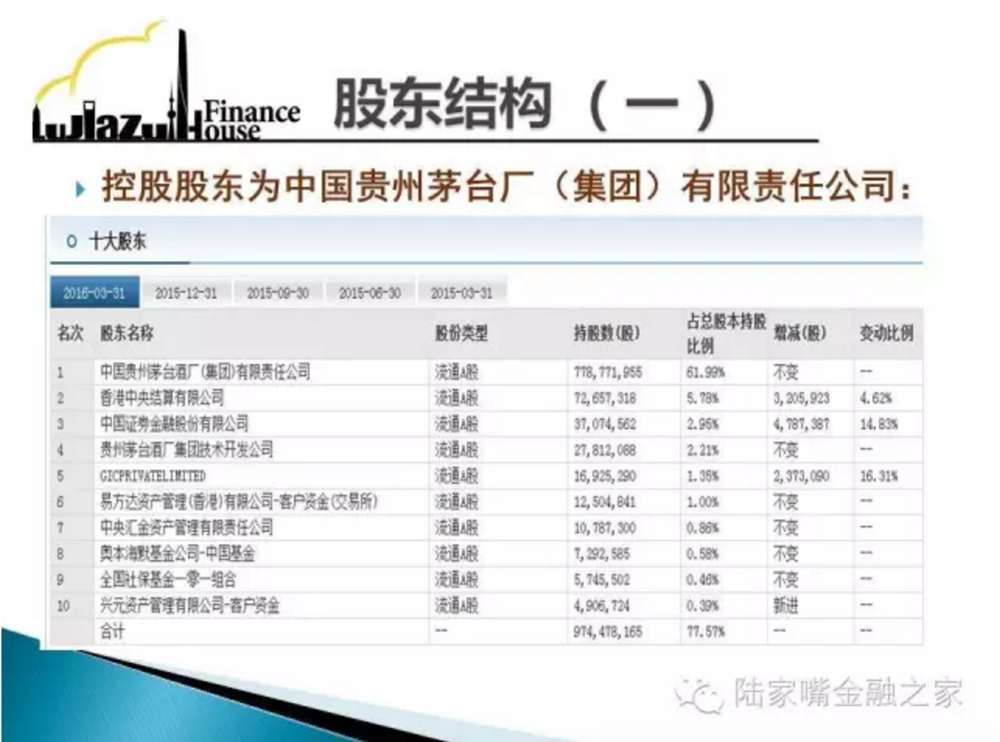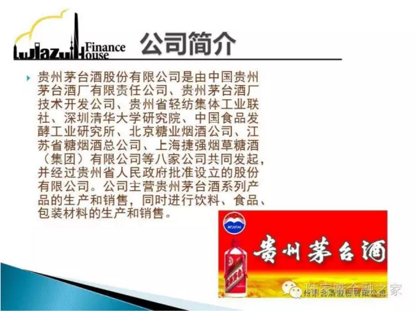 贵州茅台$(600519)$是由中国贵州茅台酒厂有限责任公司、贵州茅台酒厂技术开发公司、贵州省轻纺集体工业联社、深圳清华大学研究院、中国食品发酵工业研究所、北京糖业烟酒公司、江苏省糖烟酒总公司、上海捷强烟草糖酒(集团)有限公司等八家公司共同发起成立的股份有限公司。主营贵州茅台酒系列产品的生产和销售,同时进行饮料、食品、包装材料的生产和销售。
