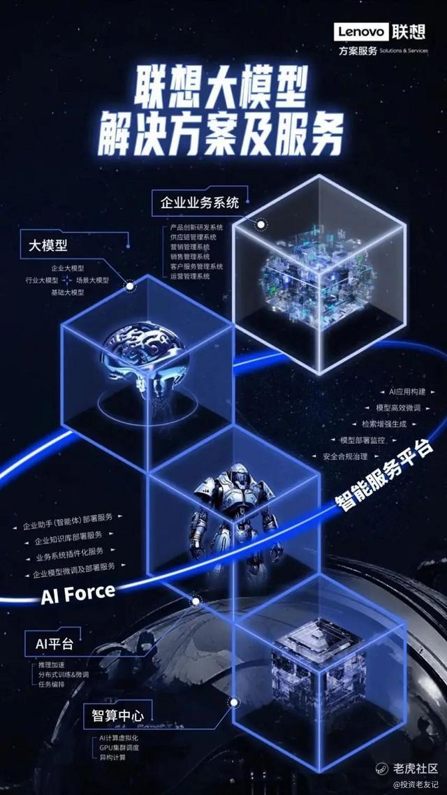 联想企业专属大模型解决方案及服务的系列优势,离不开联想全栈智能布局的支撑。经过6年AI驱动的智能化转型,联想如今已经打造了包含AI内嵌的智能终端、AI导向的基础设施和AI原生的方案服务的全栈智能布局。依托全栈智能布局,联想不仅打造了服务企业的大模型解决方案及服务,更致力于为个人打造专属大模型。其中在AI内嵌的智能终端方面,联想推出了“个人专属AI助理”——AI PC。