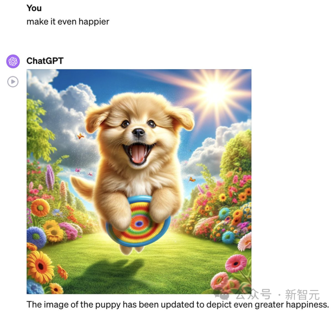 同样的思路,网友又对狗子下手了,让GPT-4创造一张高兴的狗狗照片。