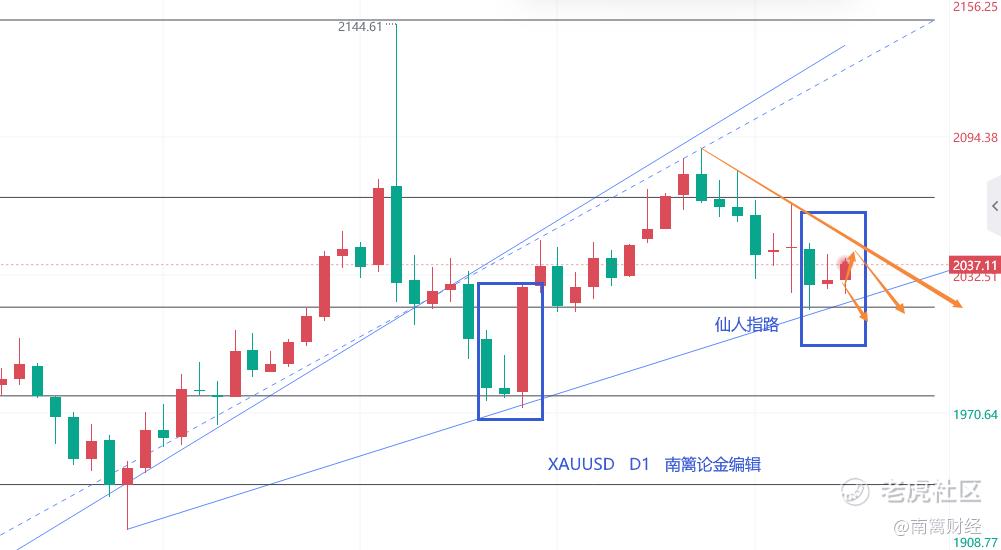 在技术面中也是,昨天的收线长上影线的小阳烛体,走出的就是所谓的“仙人指路”技术形态,这与12月12日的烛体相像。但是上一次是紧跟着鲍威尔的鸽派讲话,才导致的大阳攀升,这次的自然上涨,力度没有之前那么强,但是基本上可以关注一下日线的中轨40—45一带了。