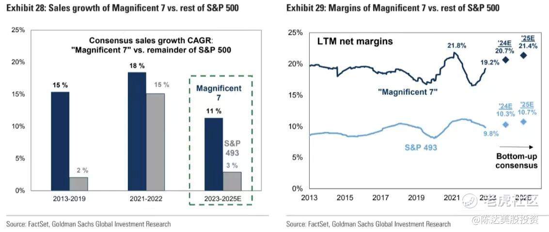 左图,七龙珠与标普剩下493的成长性对比;右图:七龙珠与标普剩下493的预期净利率的对比。可以看得出来贵的道理。