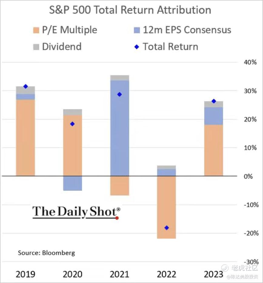 当然这两年被鲍威尔彻底给绑架住了,流动性带来的估值倍数的变化,在最近五年里的四年都唱了主角: