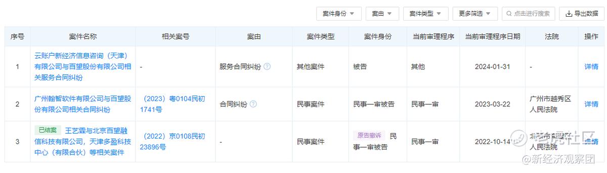 此外,天眼查信息显示,百望云还卷入到三起司法案件中,且三起案件百望云均为被告身份。在冲刺港股IPO的关键阶段,司法案件能否顺利审结,也是百望云IPO过程中的潜在风险。