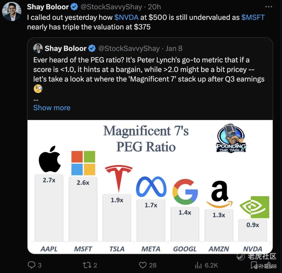 从其中看到nvda其实最便宜。谷歌亚马逊由于一个受到ai压制 一个受到pdd压制都不贵。$英伟达(NVDA)$