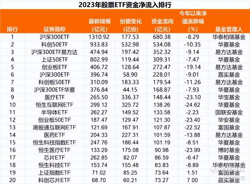其中,华泰柏瑞沪深300ETF成为2023年吸纳资金最多的股票ETF,当年净流入680.38亿元,成为行业第一只超千亿的股票ETF。