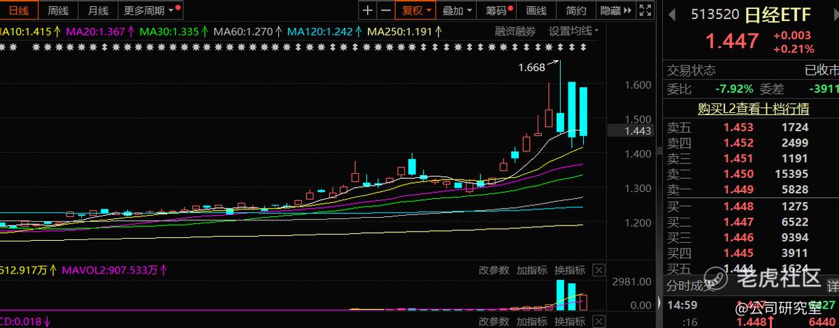 前几日,几只投资日经指数的ETF,竟然被蜂拥而至的资金直线拉高,其中,华夏野村日经225ETF,1月16日的二级市场价格达到1.668,与1.3154的产品净值相比,溢价幅度高达26.8%。