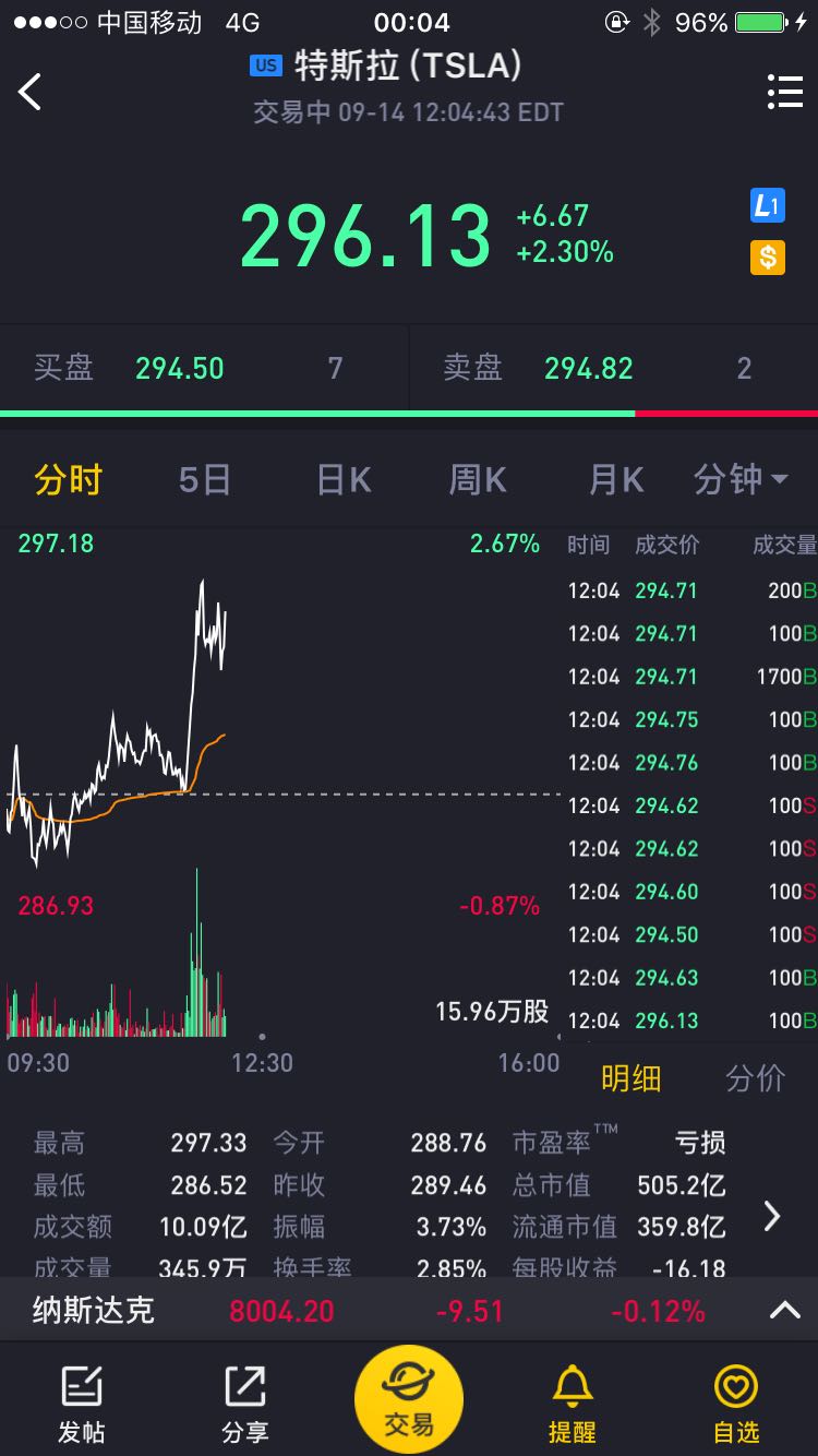$特斯拉(TSLA)$ 294.8可以买到,为什么296.13买的那么多