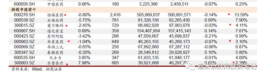 8 截止最近一周,外资持有医药行业股票前10名市值的名单,