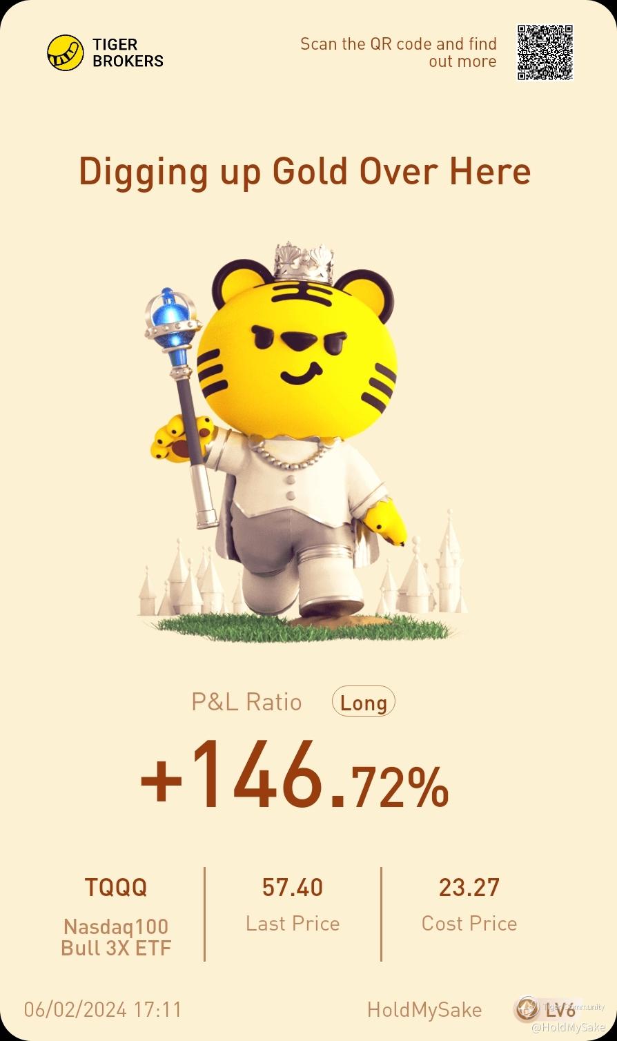 $Nasdaq100 Bull 3X ETF(TQQQ)$ Take a snapshot for before it goes down, it may go down before election, but I'm not reducing my position, it is my virtual land to correct rental from selling call option, if it goes down, time to increase the land size.