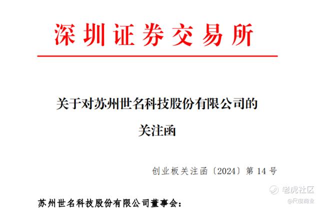 近日,创业板上市公司世名科技收到了深交所下发的关注函,在关注函中,深交所对世名科技6方面内容进行了问询。