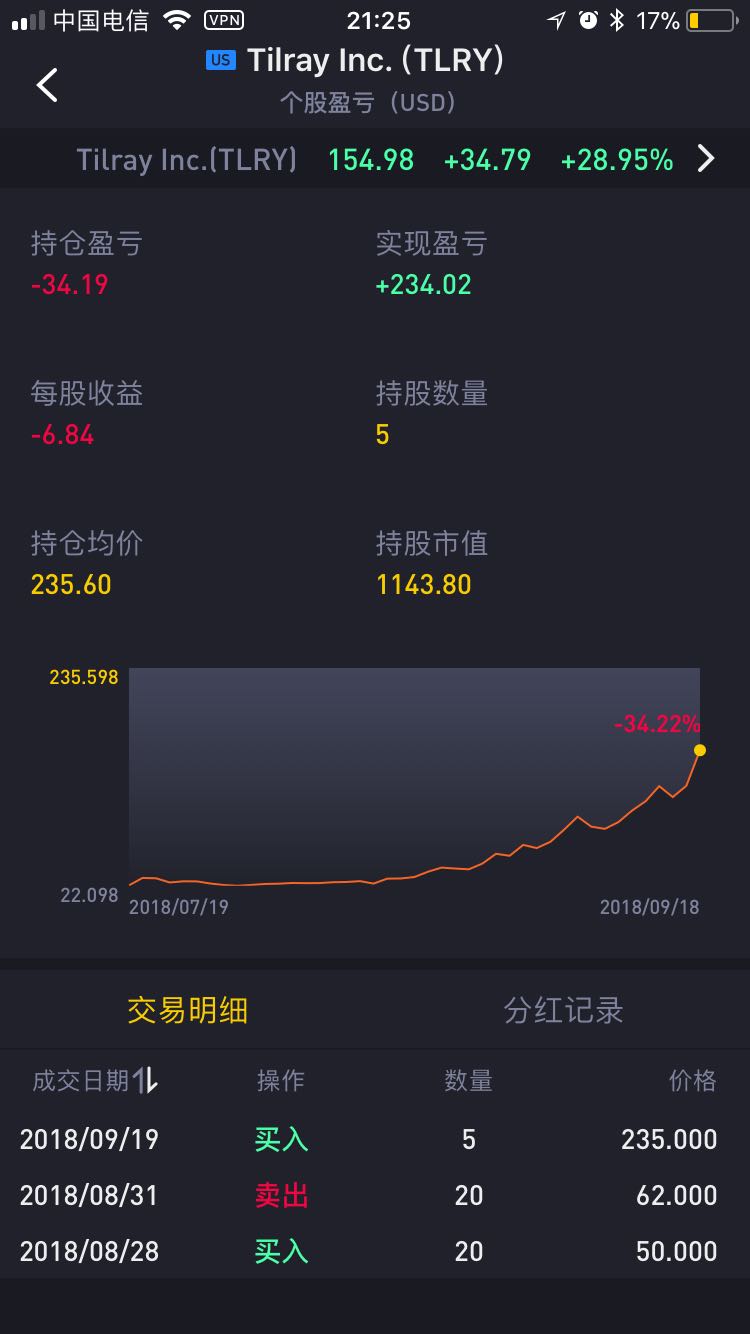 $Tilray Inc.(TLRY)$ 都是命啊,原本50买的,也很看好大麻医用的前景,结果这货涨的太猛太快,碰巧看了一篇所谓专家的文章,说这货涨的不正常,估计会狂跌,于是60就满足的都买了,结果这货一路狂飙,中间多少次再买的机会,可自己坚信不能追高,等待回落,直到今天自己都劝不住自己追高了,没赚钱命啊