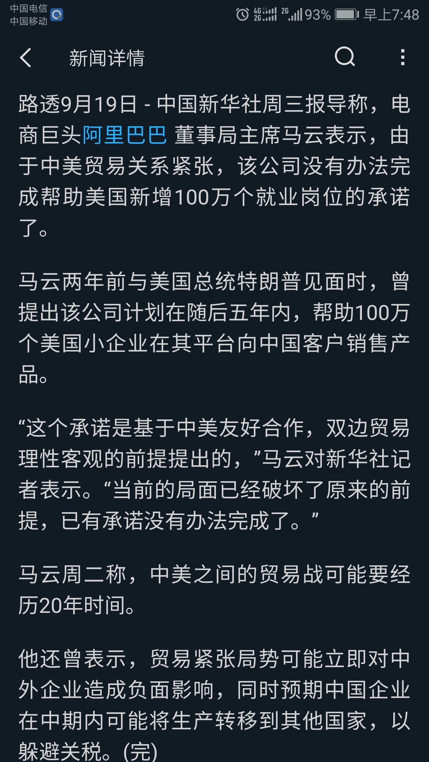 阿里巴巴在中国大陆,马云说在中国可以给美国人民提供一百万个工作岗位你认为美国人能来不嘛。