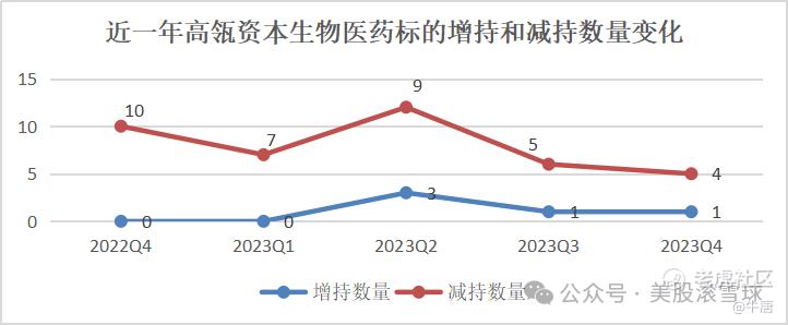 减持仓位方面,四季度,高瓴资本减持了4只医药股,数量比上季度减少一只,与2022年、2023年相比,数量处于下降趋势。