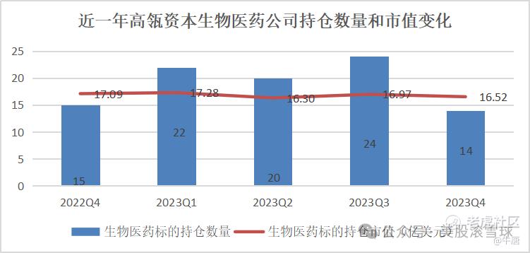 风险偏好下降。2023年,高瓴资本在医药领域的配置,从一季度主要建仓传统大型医药白马股,到二季度主要建仓ARGX、AXSM等潜力较大的成长股,再到三季度建仓了AMAM、PACB等规模更小、研发阶段更为早期的生物医药公司,最后到四季度几乎无差别的清仓医药股,高瓴资本在Biotech领域的风险偏好呈现先上升,后下降的趋势。前三个季度的风险偏好上升,一定程度这与美联储的加息进入尾声阶段有关,而四季度的大幅清仓,似乎是不看好生物医药行业再2024年的表现,或者是对投资行业方向的调整。