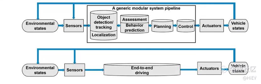 分模块方案介于软件1.0和2.0之间,除却采用神经网络的那部分,采用人工编码的另一部分依然依赖于设计规则的优劣和传统算法的性能。