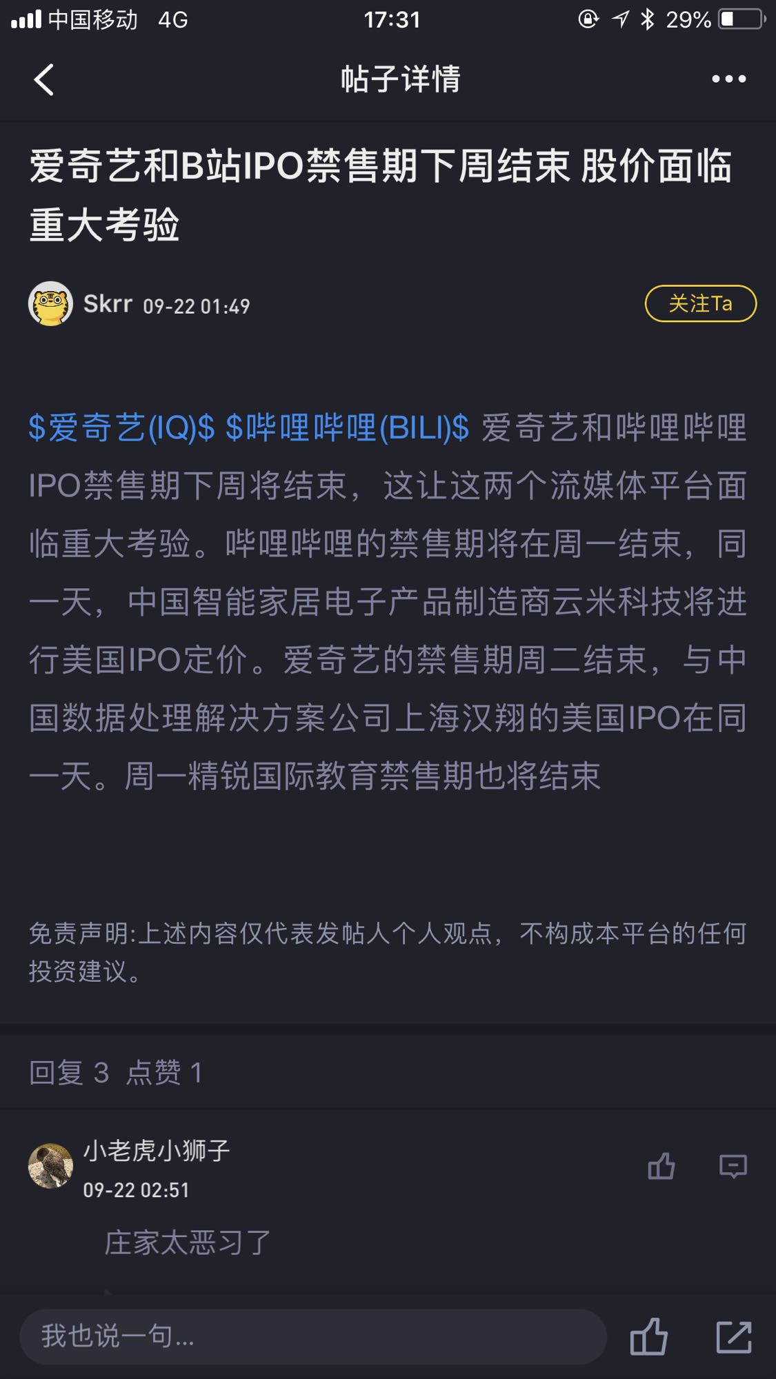 $哔哩哔哩(BILI)$ 据说今天解禁了??大家注意设置止损,防止大跌