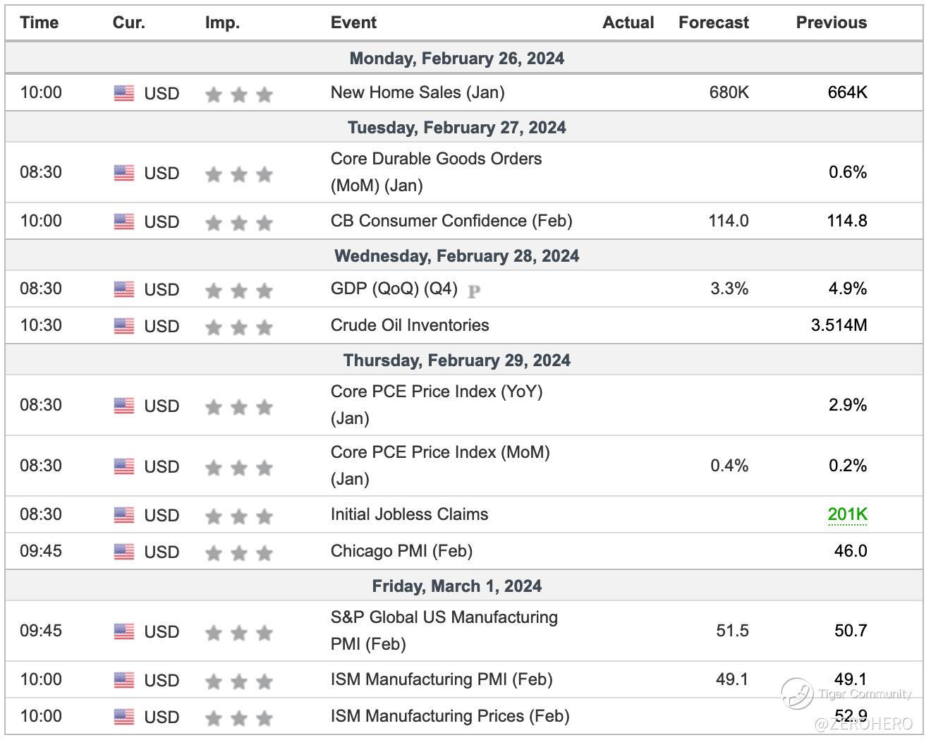 Economic news for the week