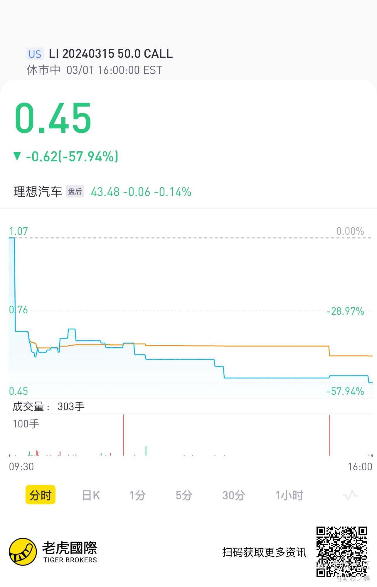 20240315/50的CALL,财报后股价大涨20%+,达到45+,46+,IV大涨,权利金比较吸引,判断短时间不会涨过50,开仓卖了个CC.(其实就算真的涨到50刀,自己也会忍不住卖出正股,所以卖CC,可以多赚点)