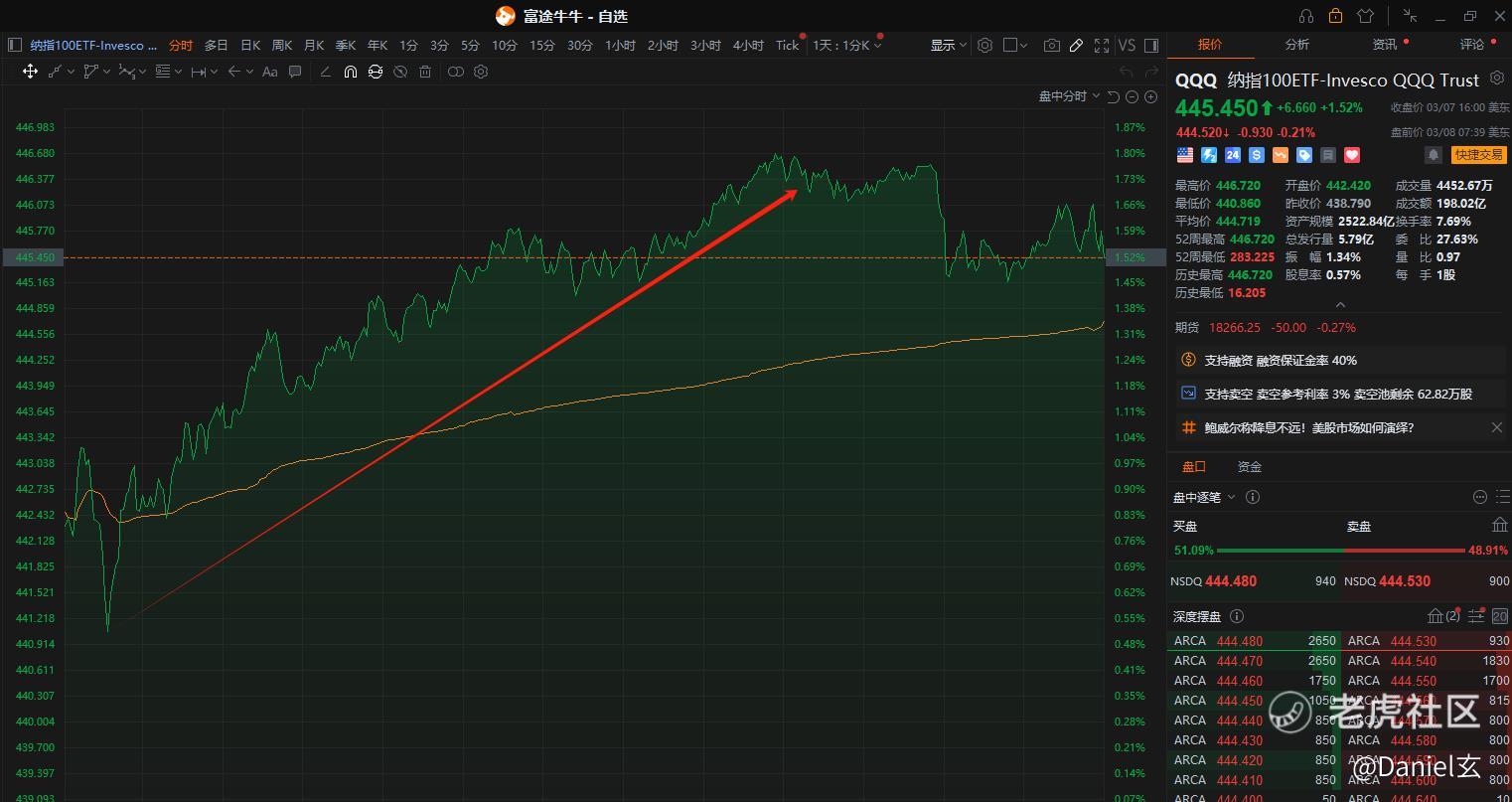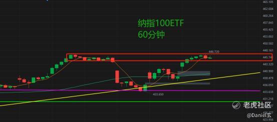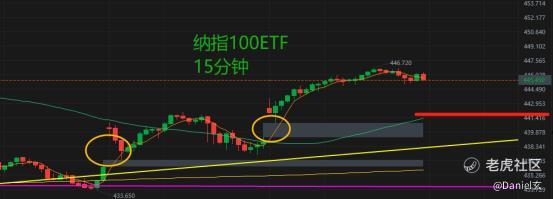 $纳指100ETF-Invesco QQQ Trust(QQQ.US)$ 15分钟看的是细节,60分钟看的是短期趋势。连续两天的跳空上涨,今天势必会遇到一定的抛售阻力。不过由于欧洲银行和埃及的暴雷,可能会使得今晚美联储官员的讲话更加倾向鸽派。所以日内交易可能会比较纠结,但依旧不存在大跌的基础。从15分钟级别上看,左侧支撑主要集中在441.5附近。而60分钟级别则是遇到左侧顶部的市场阻力。